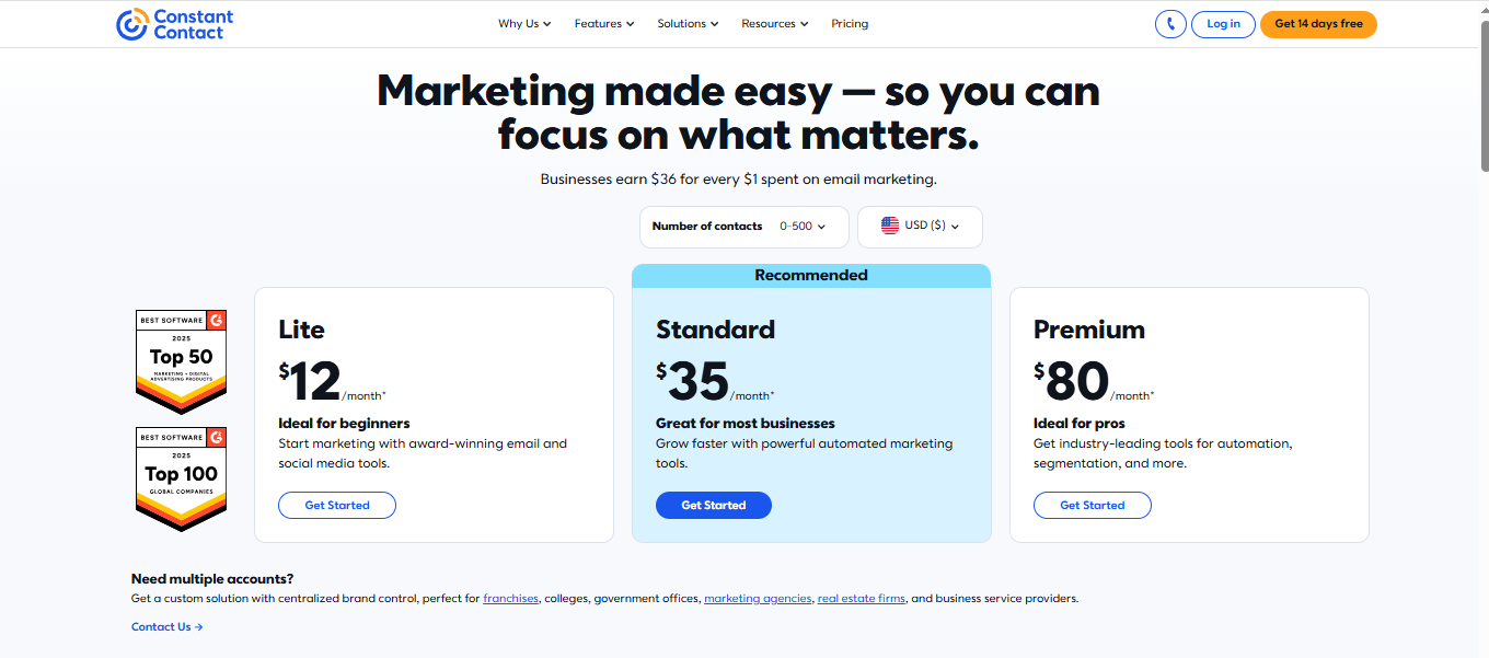 Constant Contact offers plans based on the number of contacts you have and the features you need. Here’s a simple breakdown: