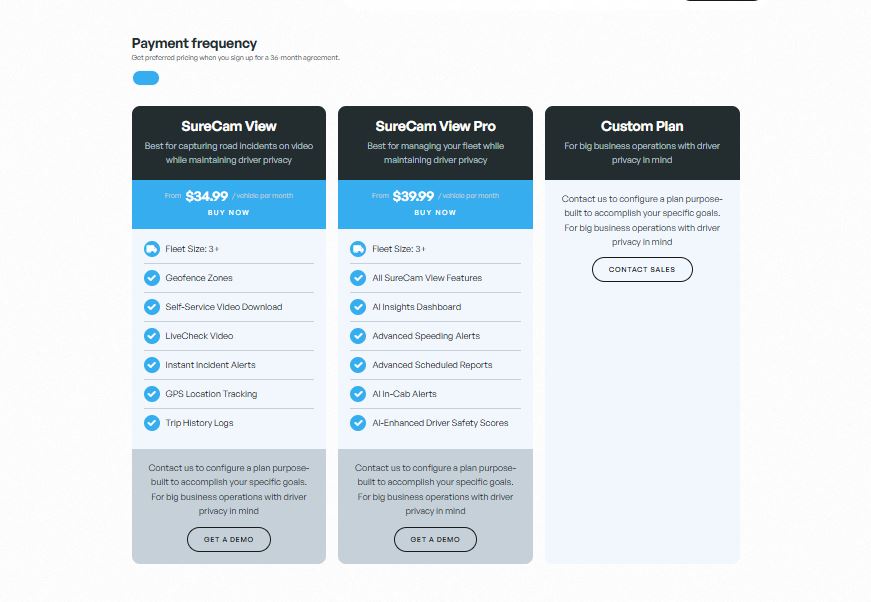 SureCam customizes pricing based on fleet size and camera setup. Costs typically include: